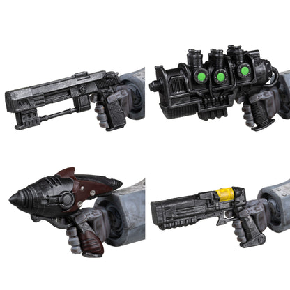 - Includes TONS of accessories: Short plasma pistol, alien blaster pistol, laser pistol, T-60 pistol, Gauss minigun, light machine gun, Black Diamond Sword, 4 alternate hands and display base